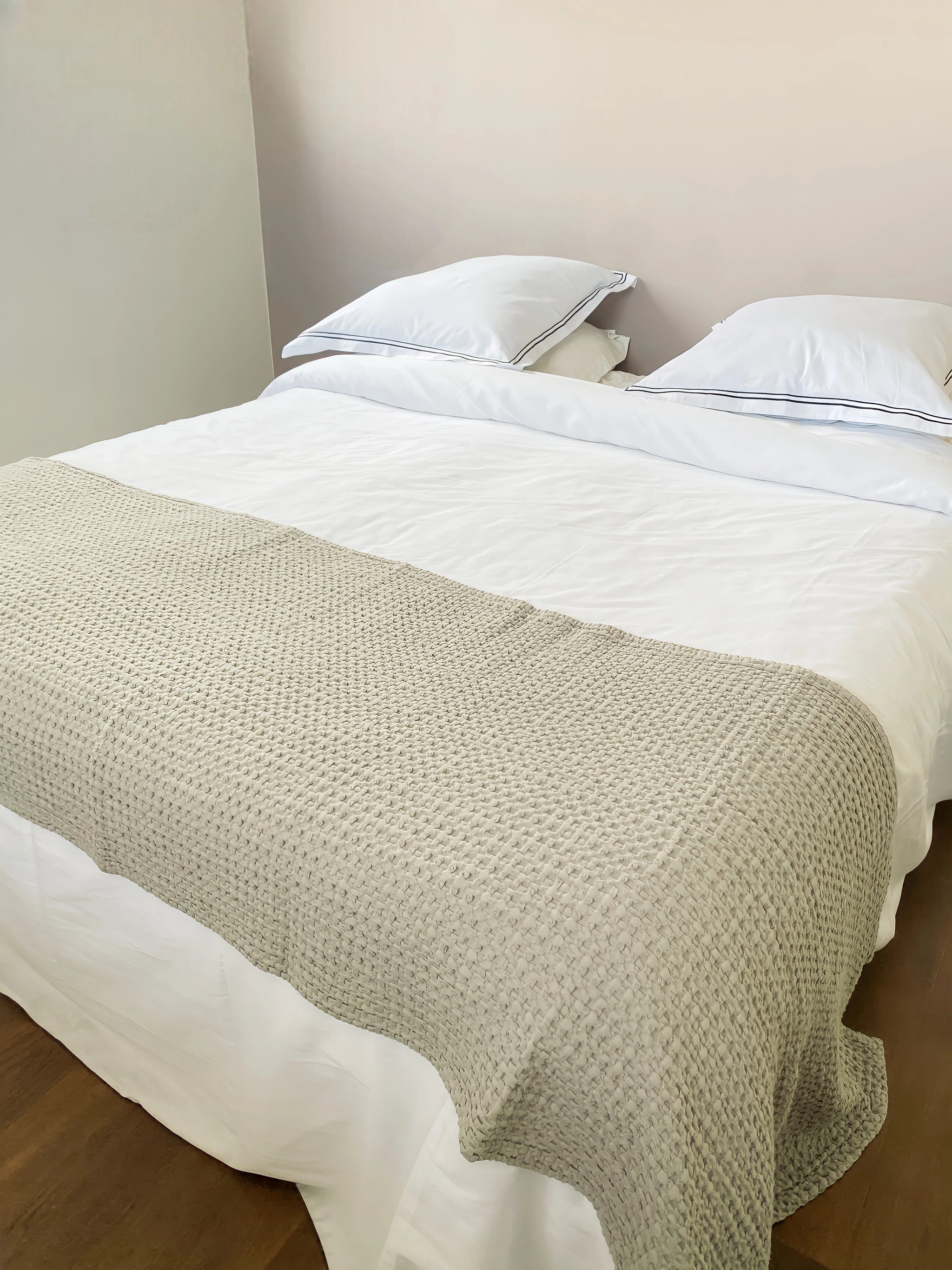 Chemin de lit Waffle en coton gaufré 100% coton.